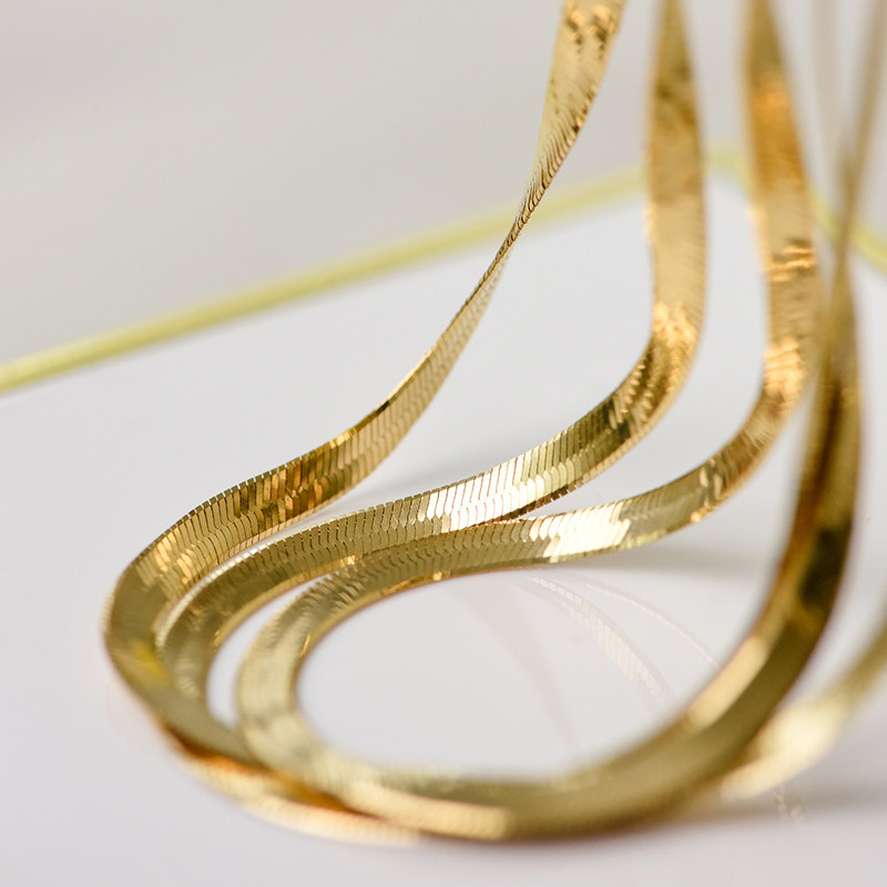 Wing (special) shining gold hot snake bone necklace 18k gold plain gold texture wide snake bone 40 45cm