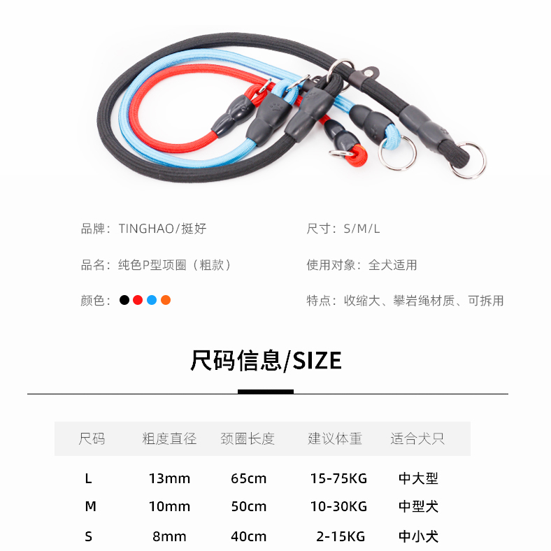 S 8mmx40cm Small Dog M 10mmx50cm Medium Dog L 13mmx65cm Large Dog