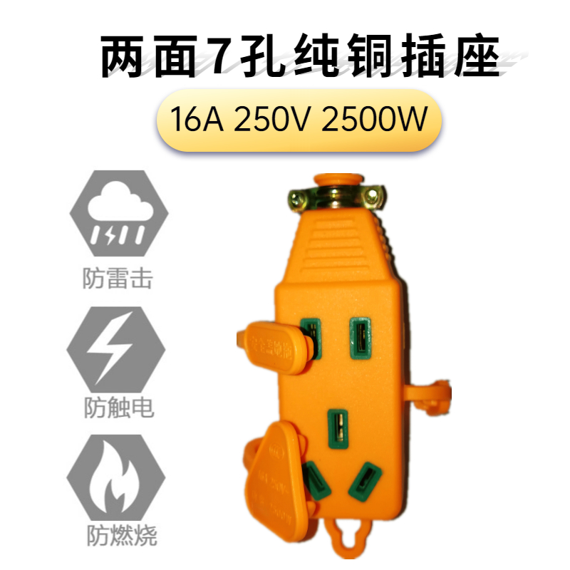 Single-phase bipolar plug three-pin fixed plug two sides 7-hole socket national flat foot converter Eurosign round foot converter full 10
