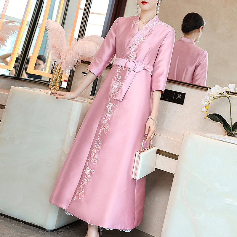 Fa-style retro foreign dress collection waist display slim improvement Handmaid's middle country wind long version high-end temperament Fan clothes
