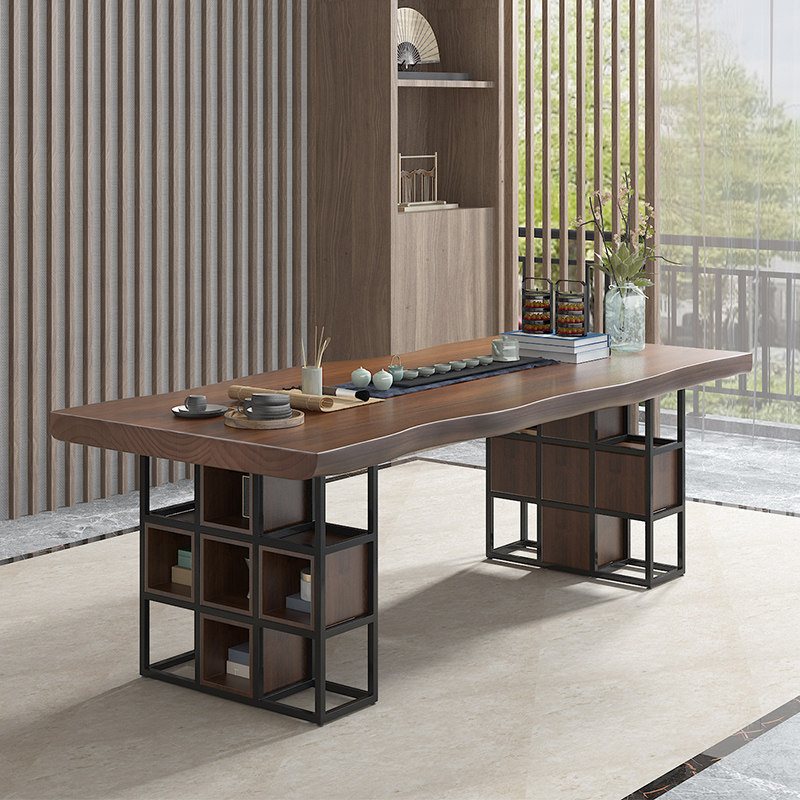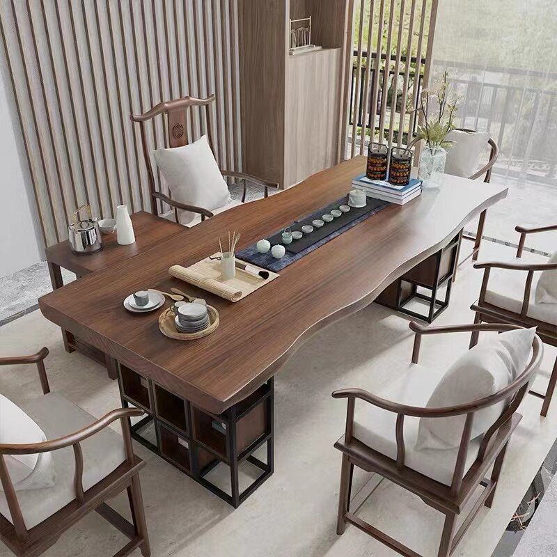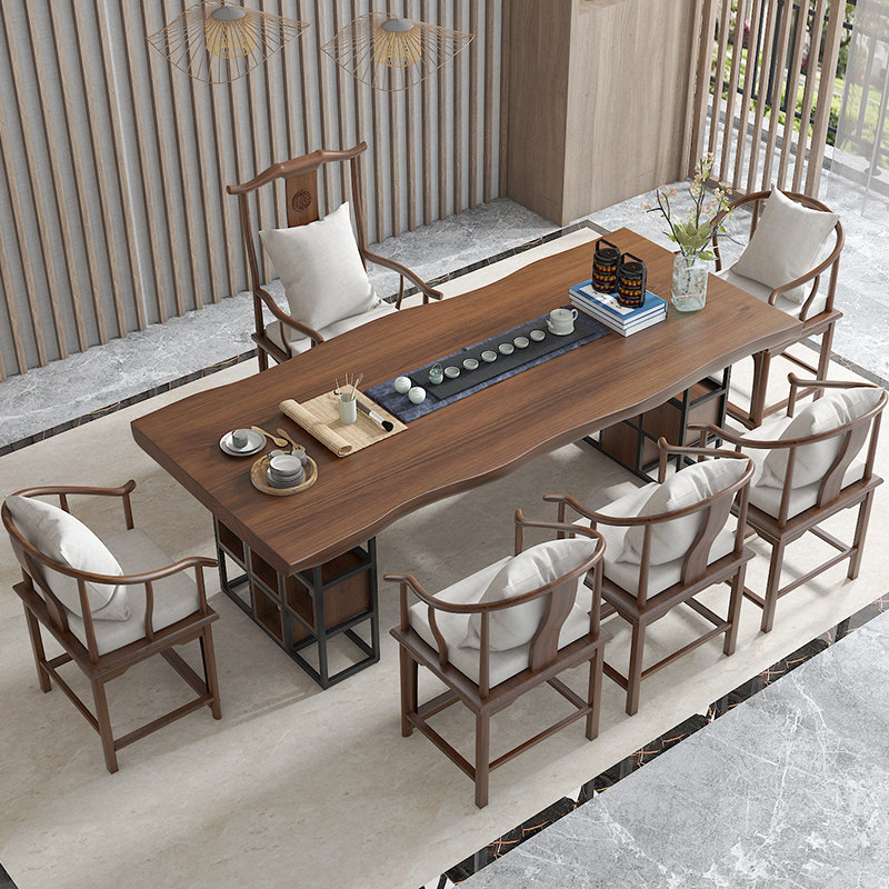 New Chinese style log large board solid wood Zen tea table and chair combination simple Kung Fu tea table home drinking tea table coffee table