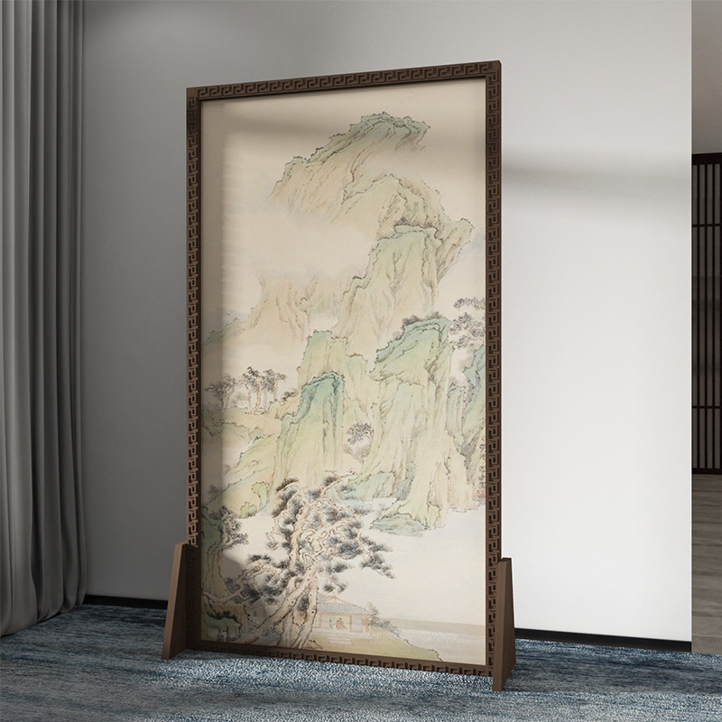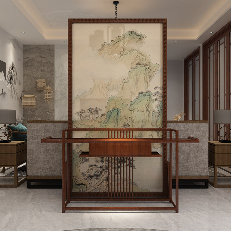 New Chinese style solid wood back texture border carved hollow screen partition Small household entrance Living room partition