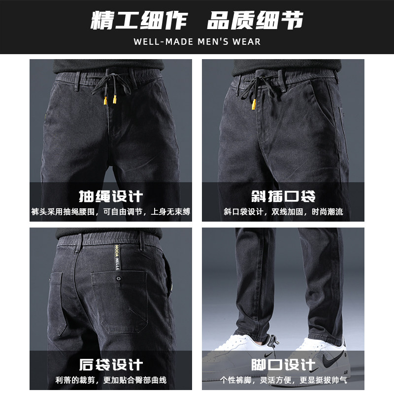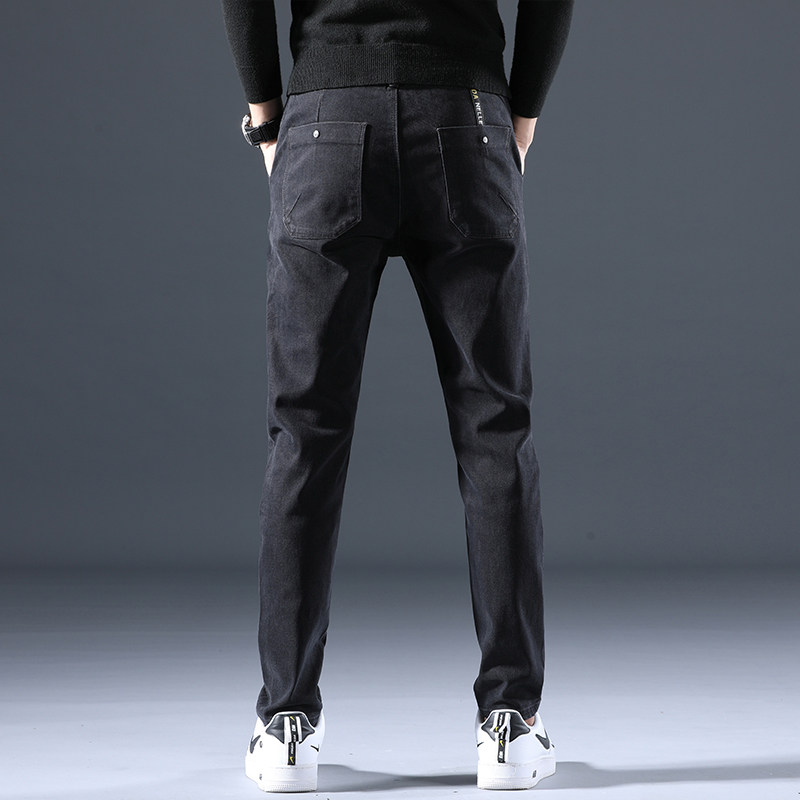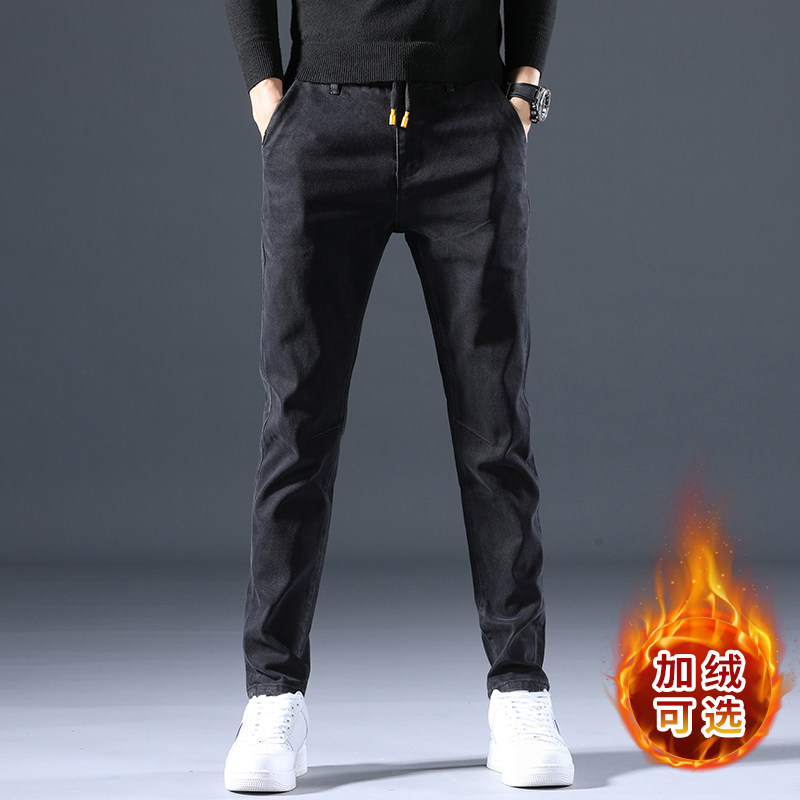 Hong Kong winter plus plus thick jeans men's black slim feet 2021 fall/winter men's casual long pants