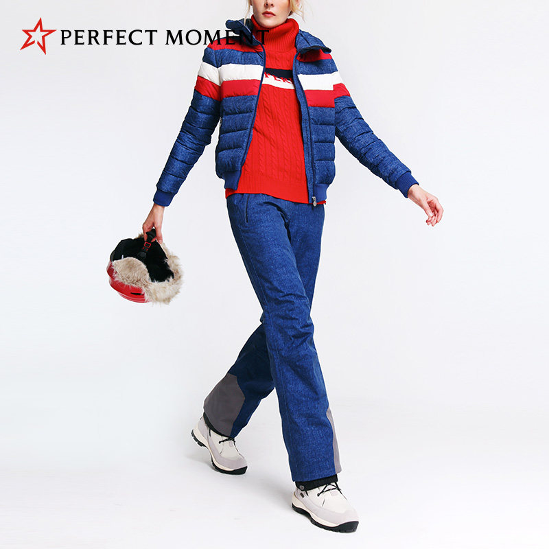 Perfect Moment double board Ski Suit White Goose velvet Collar Wind Shield Warm short Outdoor Down Jacket