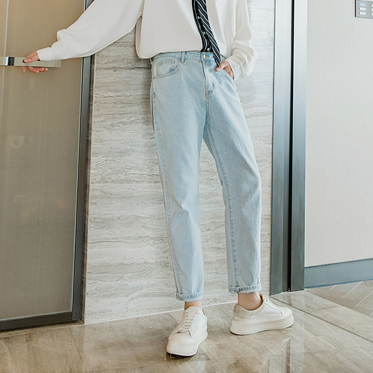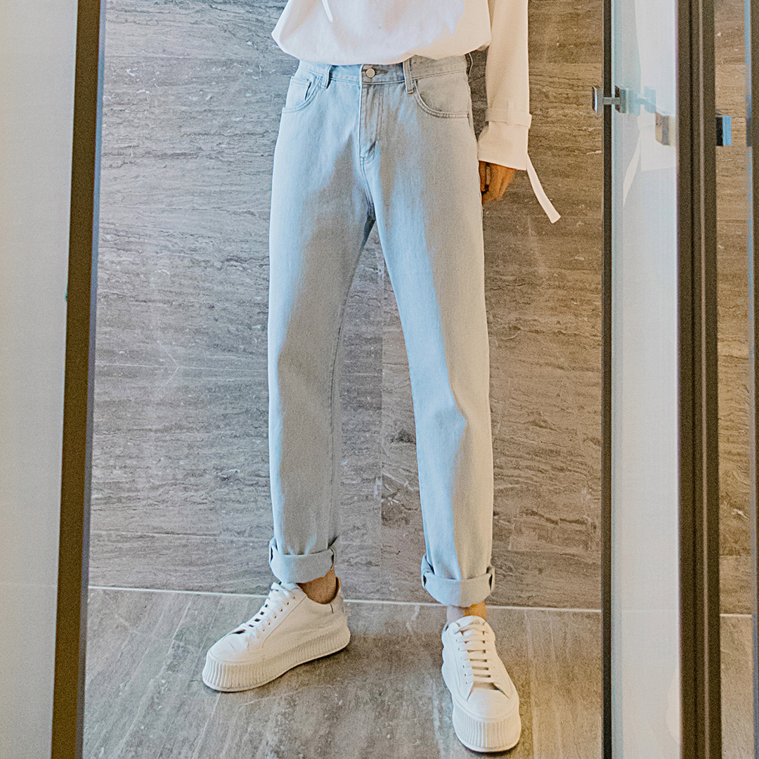 Sicilian men's autumn light-colored pants Men's Korean version of the trend all-match trousers loose straight light blue jeans