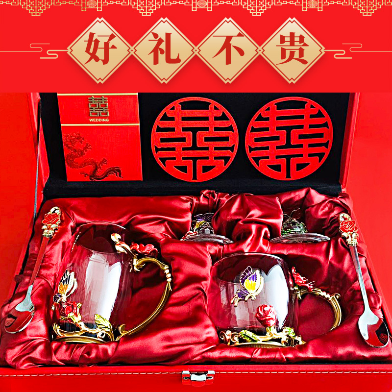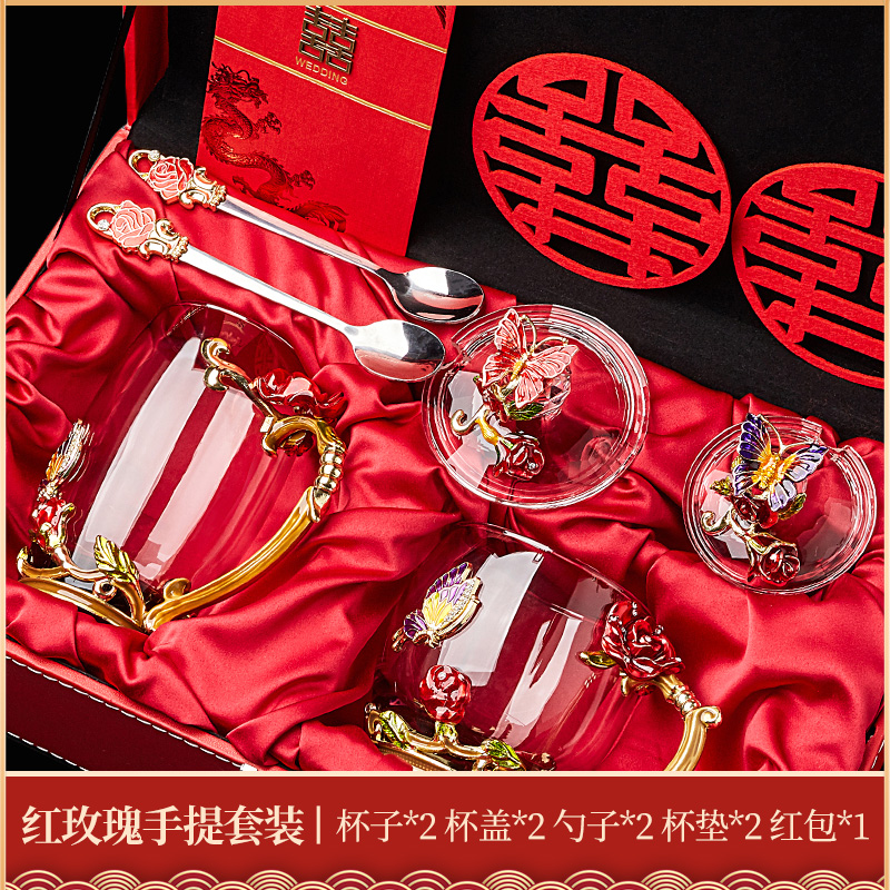 Blue Butterfly Flower Set Spoon Without Cup Cover (Pure Red Suite) Free engraving Card Red Butterfly Gift Box Cover Cover Scoon (Festival Gift Box) Yellow Lily Set Spoon Without Cup