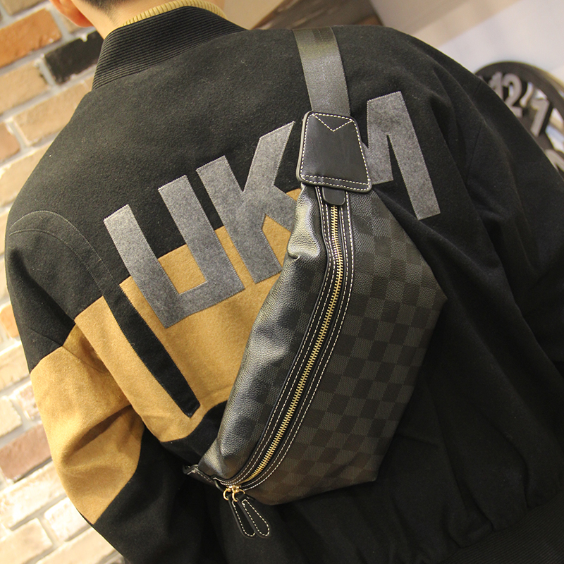 Tide brand men's messenger bag chest bag shoulder bag fashion trend backpack plaid retro small bag men's casual all-match