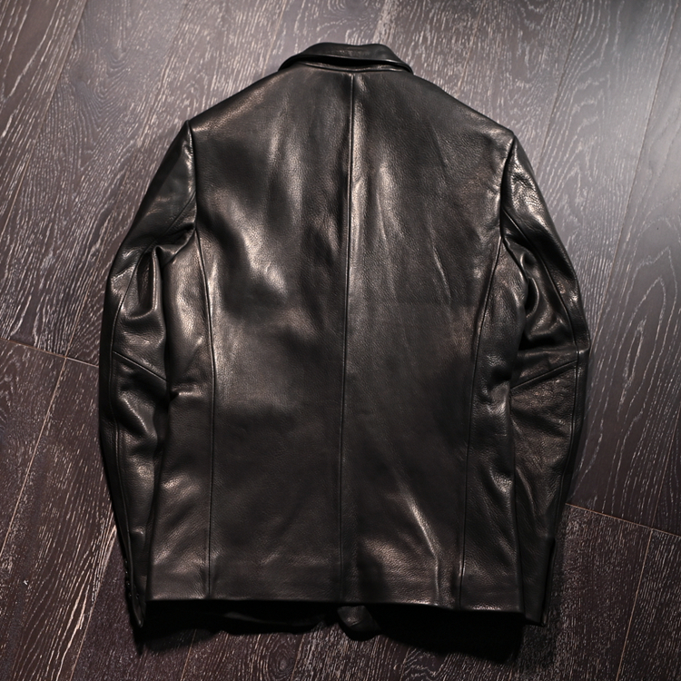 Deerskin-like texture new men's clothing light batik head layer goat skin slim casual small suit leather suit leather jacket