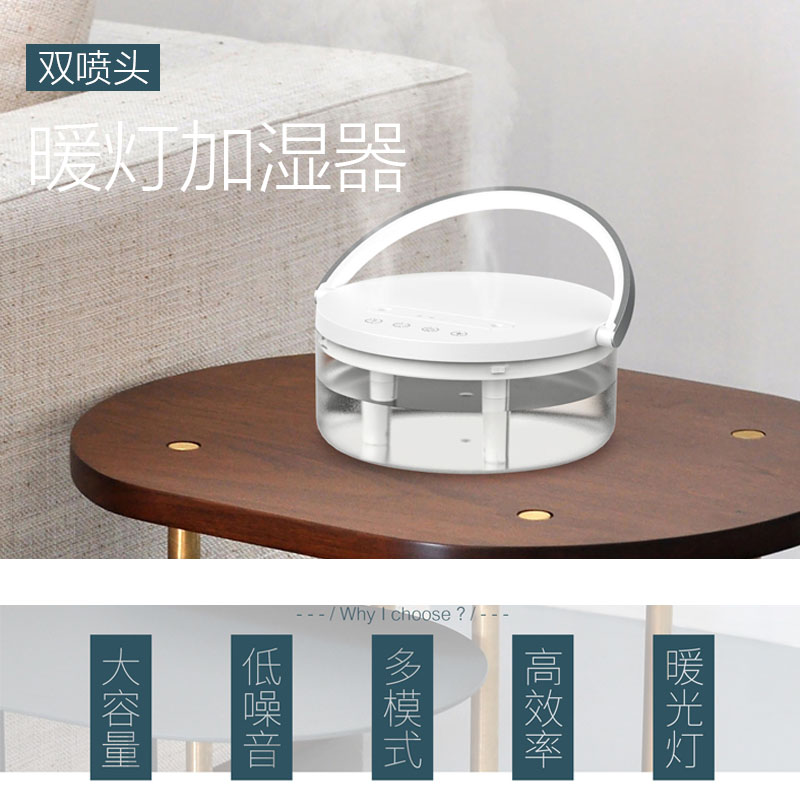 Large fog volume Double spray humidifier with small night light Home mute Bedroom pregnant woman Baby large capacity office Desktop timed Upper water-cooled Air conditioning Evaporative Home Small USB Creativity