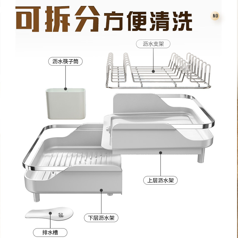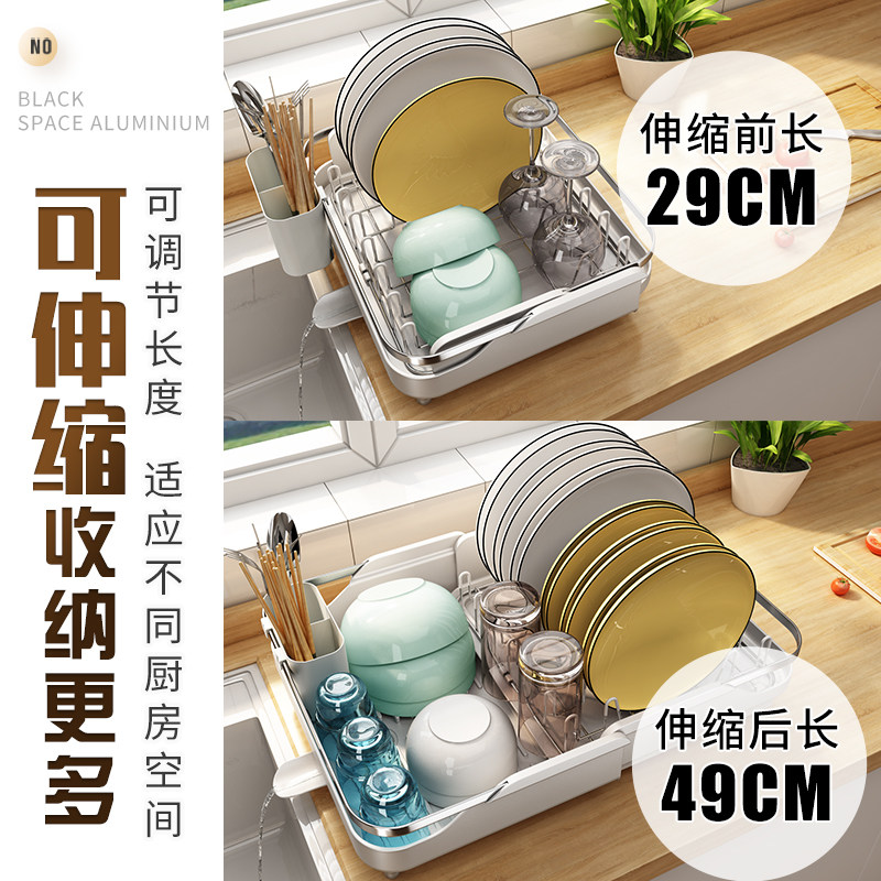 White telescopic dish drain rack (with chopstick cylinder) grey telescopic dish drain rack (with chopstick cylinder) black single-layer bowl frame (delivered water-receiving pan chopstick cage) white single-layer bowl rack (deliver water-receiving pan chopsticks)
