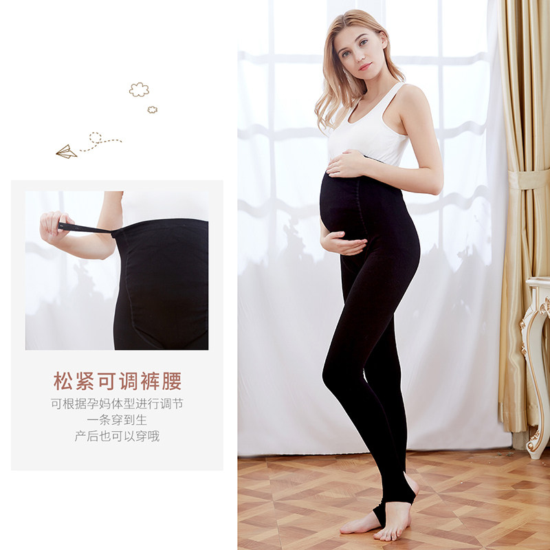 Beibeiyi Pregnant Women's Leggings Spring and Autumn Dress Winter New Plush Padded Thick Warm Adjustable Foot Pants Long Pants