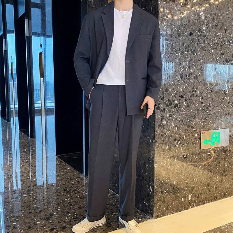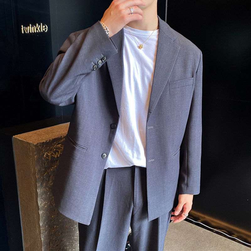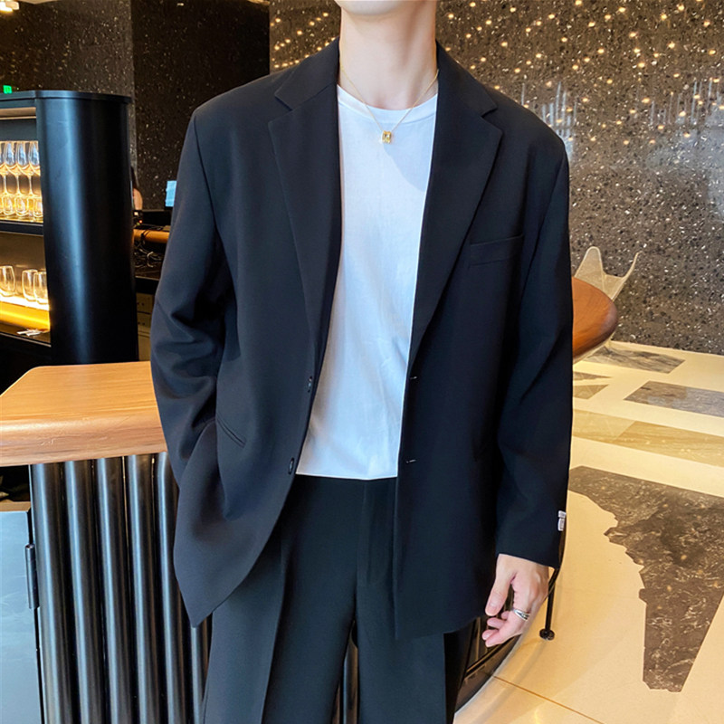 2021 early spring silhouette oversize blazer men's Korean version of loose temperament two button suit two sets of tide