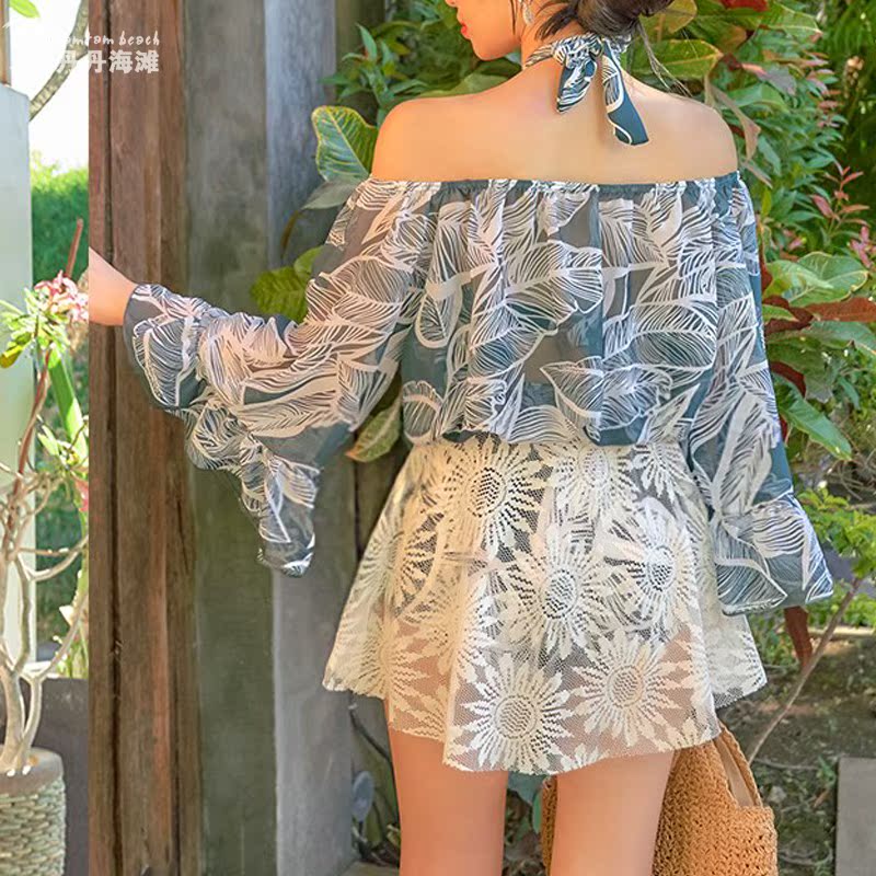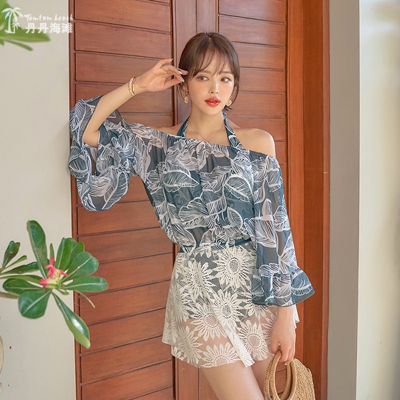 Swimsuit female Korean ins new small chest steel support gathered sexy bikini skirt sunscreen three-piece hot spring
