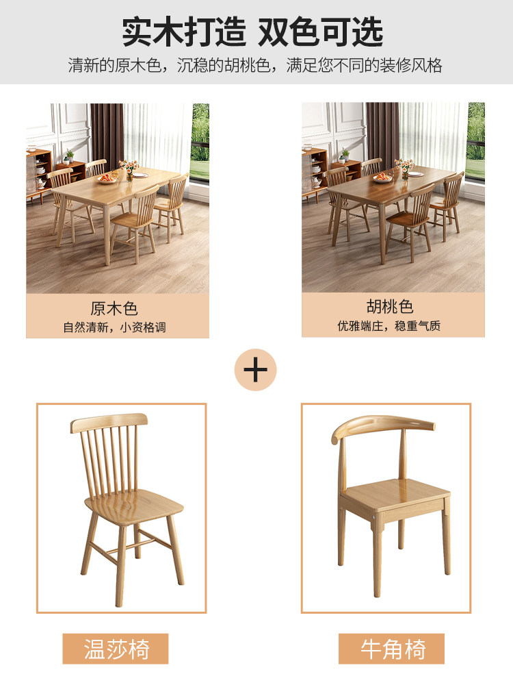 Nordic dining table all-solid wood home dining table rectangular dining table and chair combination one table and four chairs small apartment modern minimalist