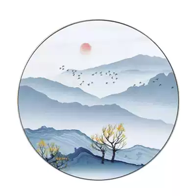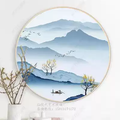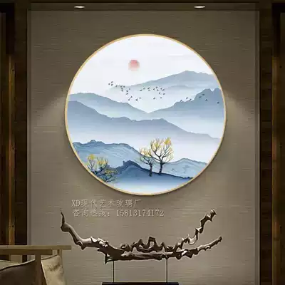 New Chinese style 3D art glass round porch decorative painting living room wall lucky feng shui Zen landscape Chinese style