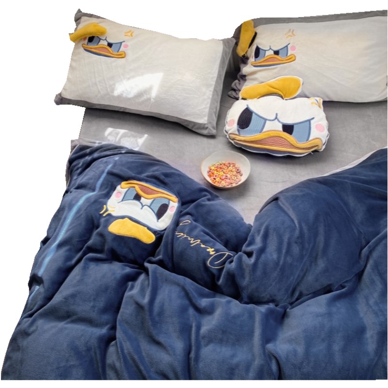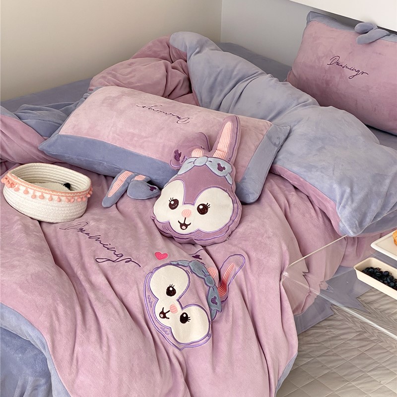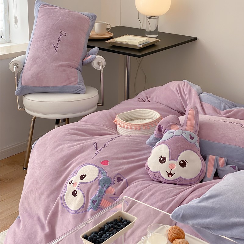 Star Della Cartoon Bed Three-Four Pieces Cute Teenage Children's Milk Suede Bed Linen Quilt With Single Winter Warm Thickening Purple