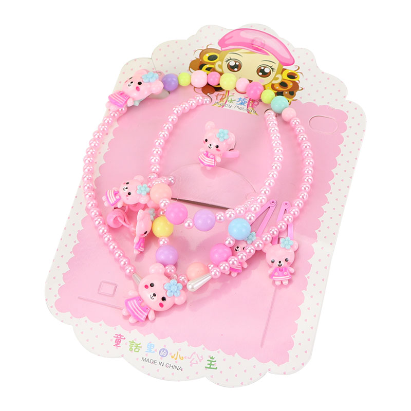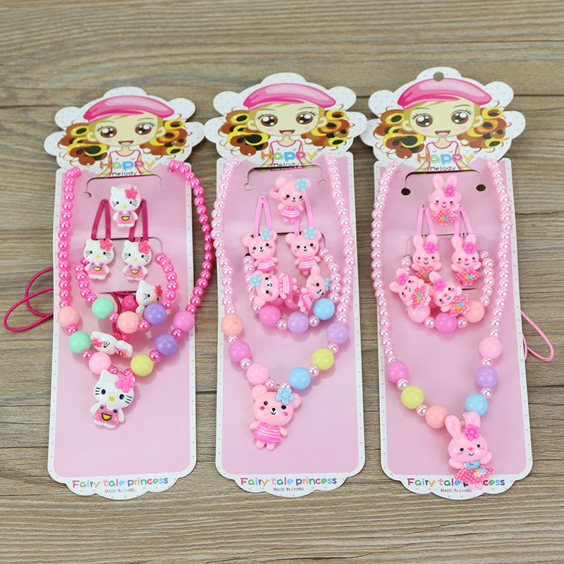 Children's hairpin rubber band does not hurt hair tie hair girl princess hair accessories cartoon necklace hand ring set headgear