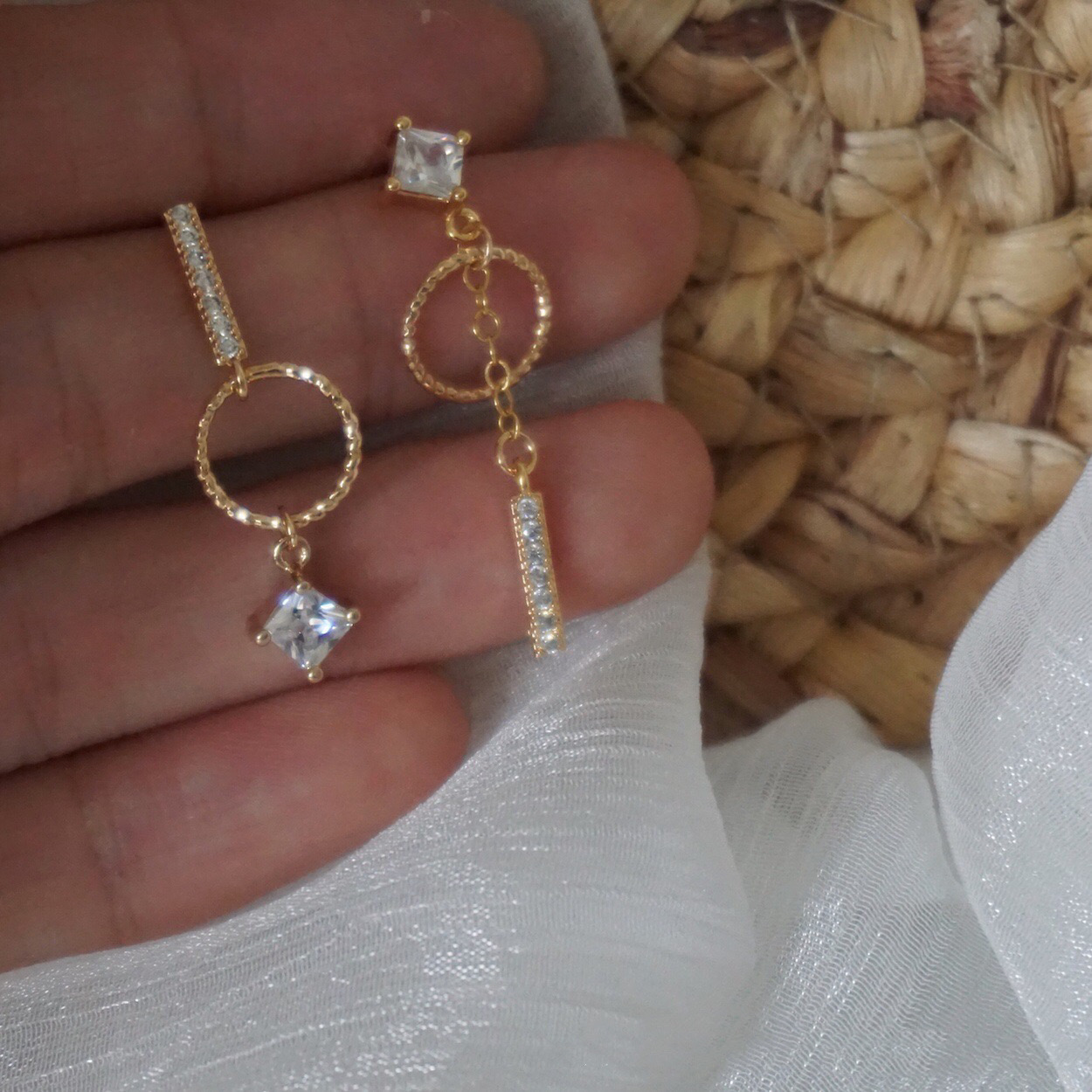 Original new silver ornaments, a little bit of starlight, asymmetric all-match earrings, earrings, shiny diamond-studded 925 sterling silver earrings