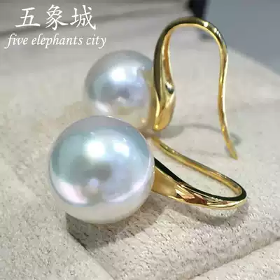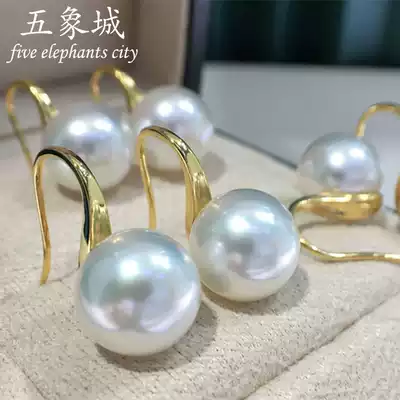 Australian natural Nanyang white beads high heels ear hook earrings seawater pearl earrings 18K gold Jinzheng round flawless bright light Joker