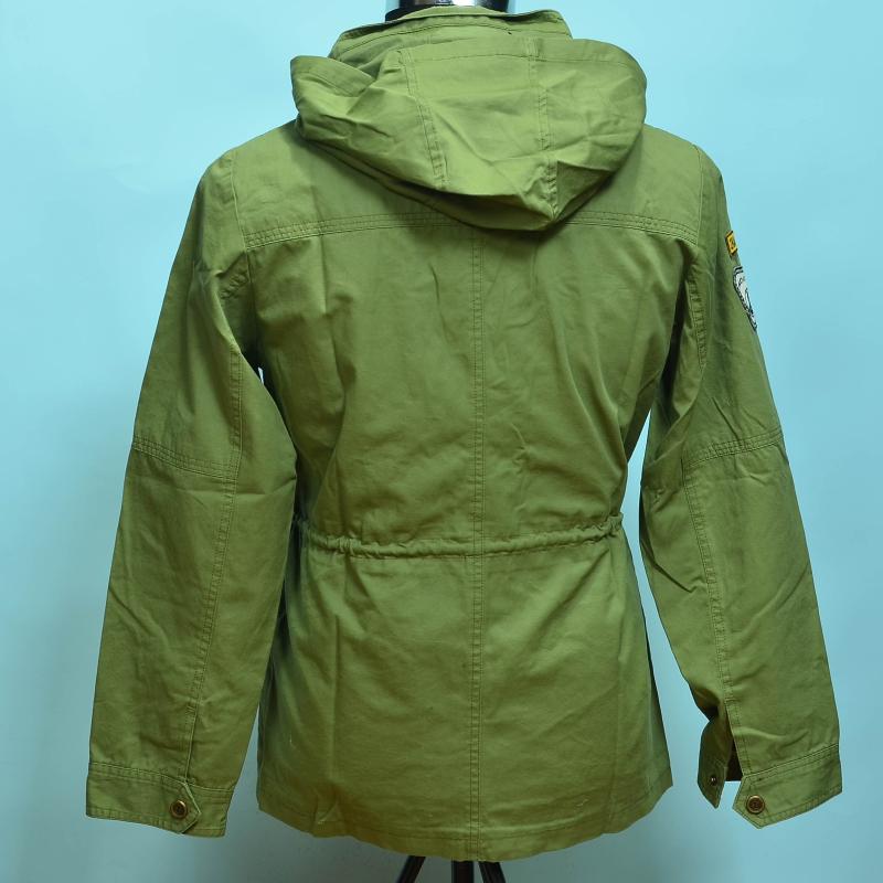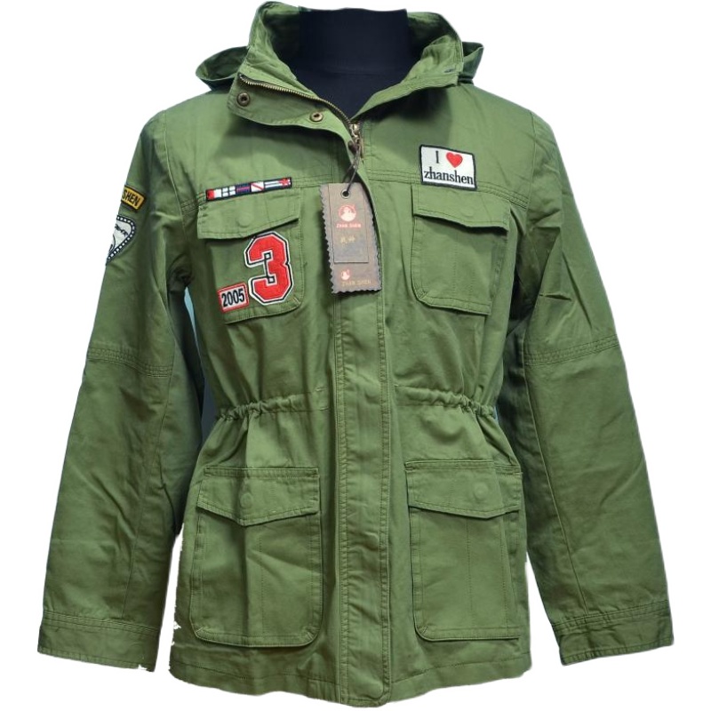 Outdoor windproof jacket blouse for male and female lovers All cotton washed high density straw green multi-mark hidden hat windsuit