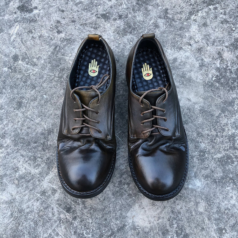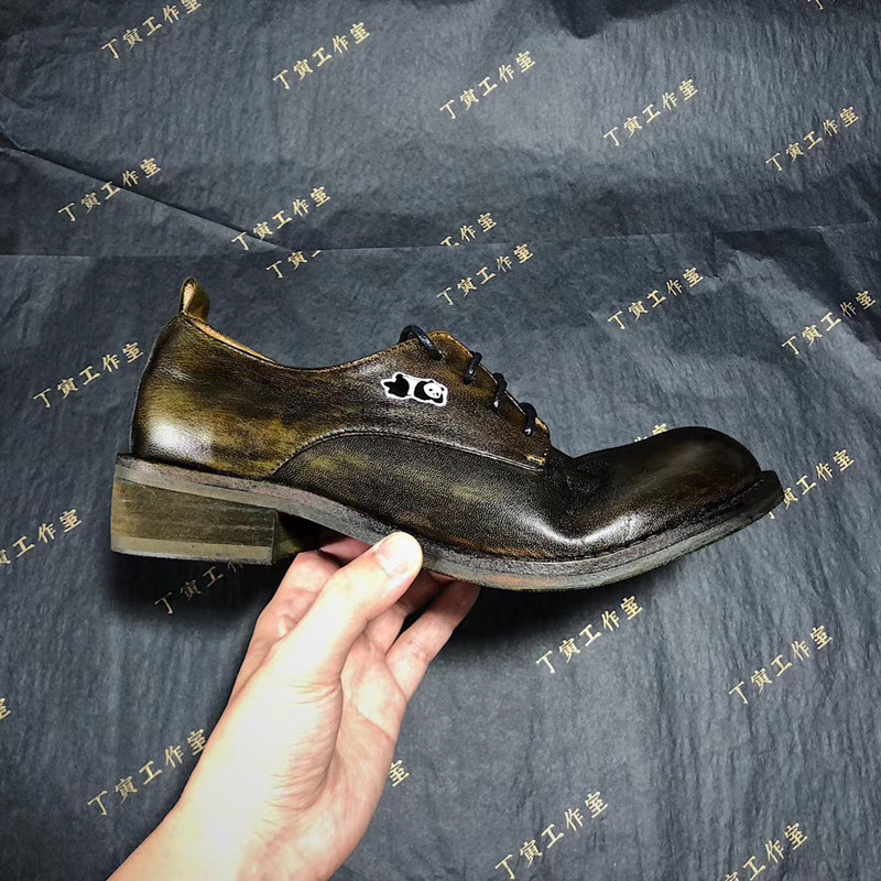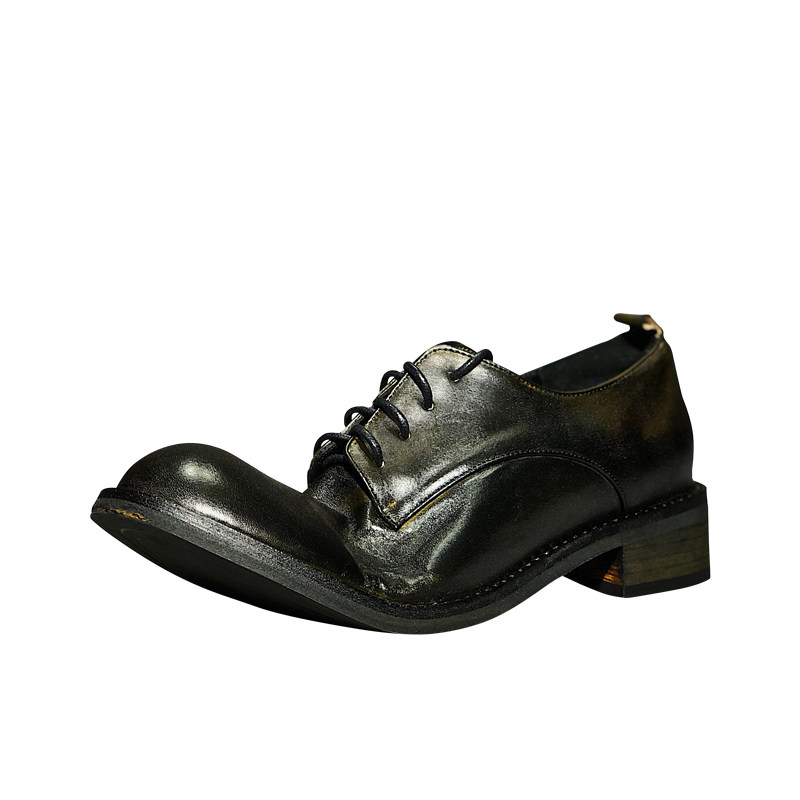 Ding Yin Studio ) black and gold ) niche original designer dark retro large leather shoes handmade women's shoes