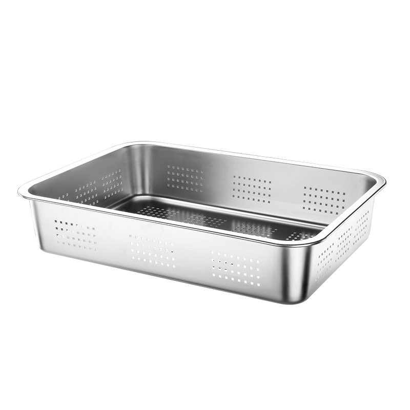 Rectangular thickened deepened stainless steel drain plate with holes with lid Washing basin Drying drain basin Punching large filter basin