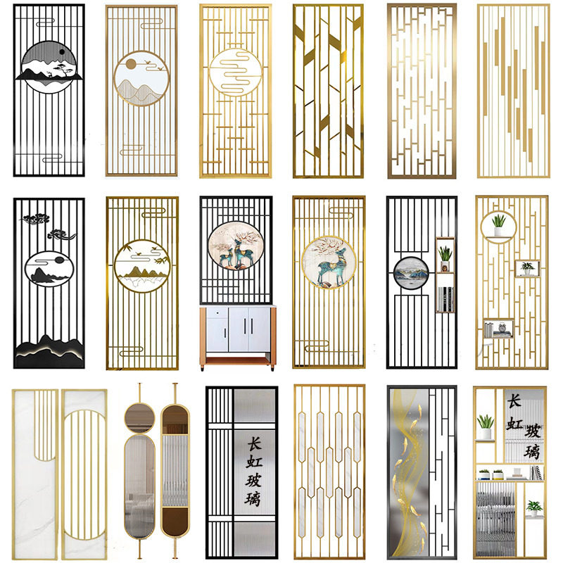 Iron Art Living Room Metal Glass Partition Hyun Guan Entrance Door Light Lavish Stainless Steel Screen Grille Home minimalist decoration-Taobao