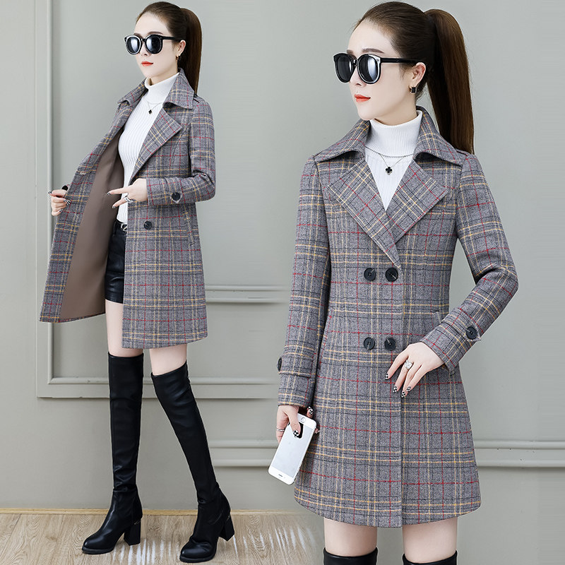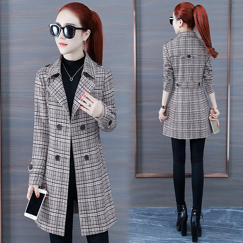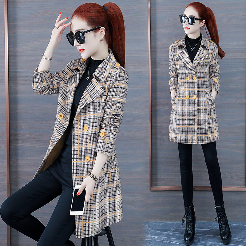 Small sub-wind coat Women's medium long version 2022 Spring new Korean version Chaochio 100 lap jacket Spring and autumn checkered Grand coat