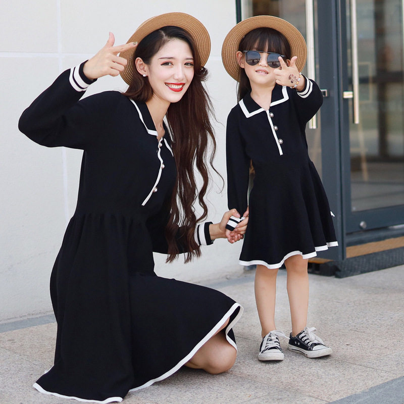 Parent-child wear autumn wear a family of three and four net red mother and daughter dresses Western style sweater black 2020 new trend