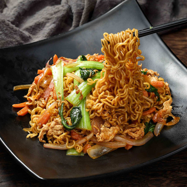 The large bowl of noodles is packed in a whole box of 9 pounds of non-fried instant noodles cake, a box of fried noodles special hot pot noodles spicy hot noodles