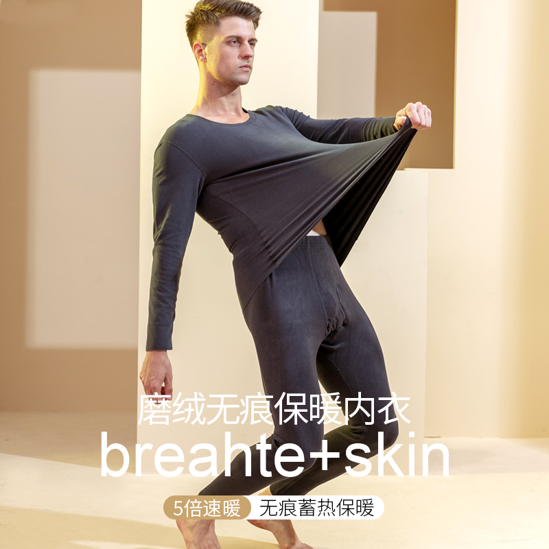 No-scratches warm underwear for men Garnter thickened suede Autumn Clothes Autumn Pants Suit Middle-aged majoring in undershirt autumn and winter-Taobao