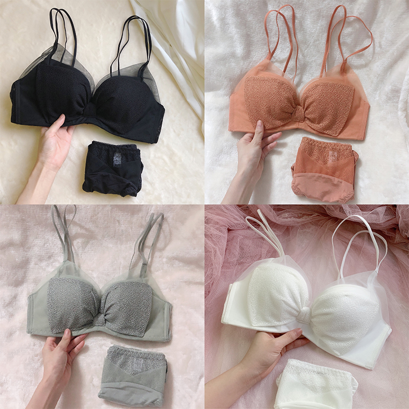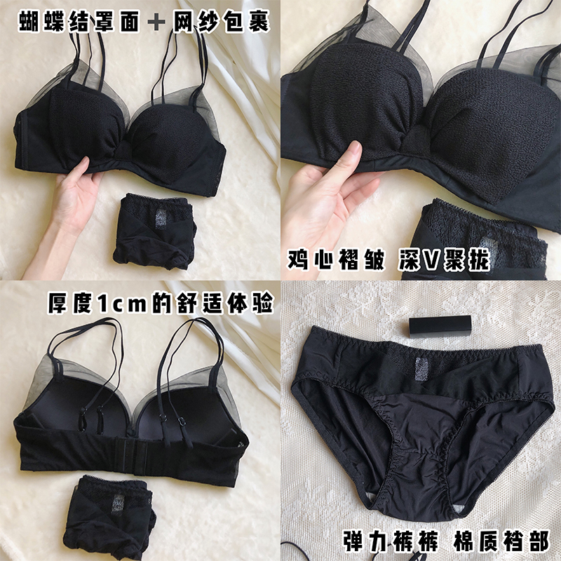 Deep alley returns to people in spring and Summer thin section gathered bra without trace small chest without rim sexy lace beauty back underwear set
