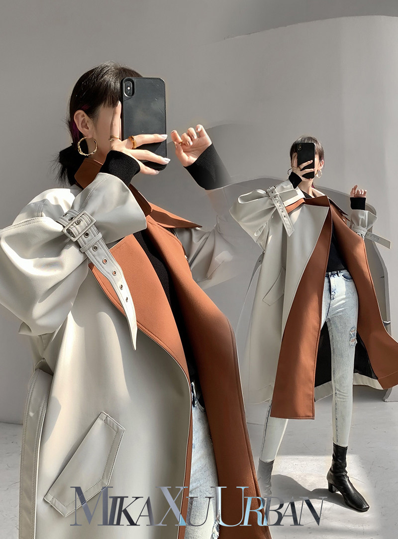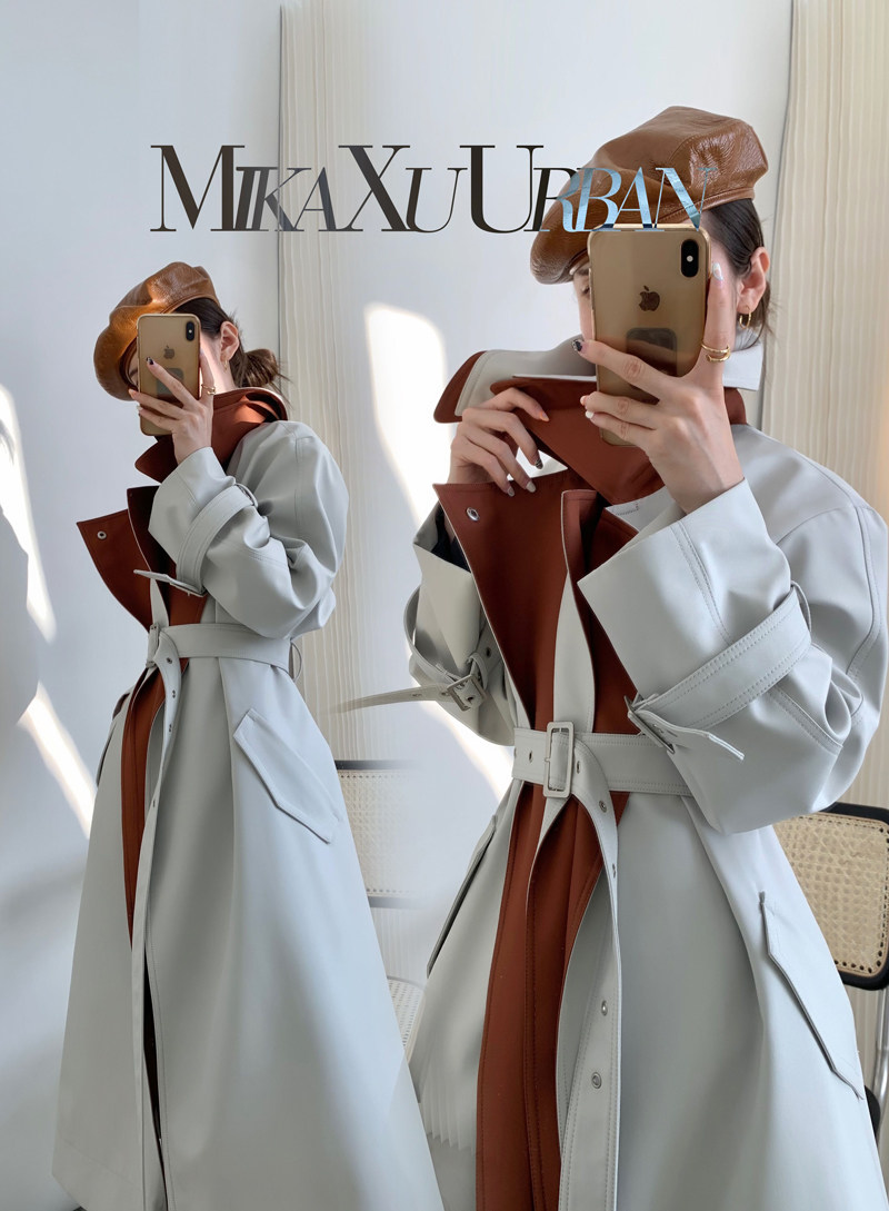 MXU Unconvinced to Fight Japan Classic Hide Collision Color Splicing Detachable Double Layer Large Turnover Design Sense Windcoat Jacket Woman