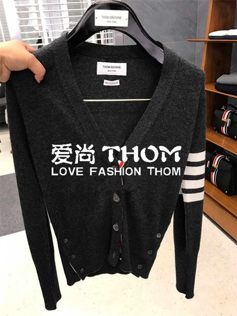 Thom's new classic four-button cashmere knitting sweater for men and women with the same tb four-bar sweater coat browne