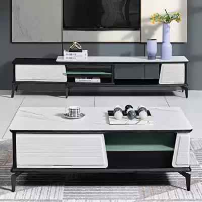 Light luxury Rock Board coffee table TV cabinet combination set modern simple small apartment living room marble household coffee table table