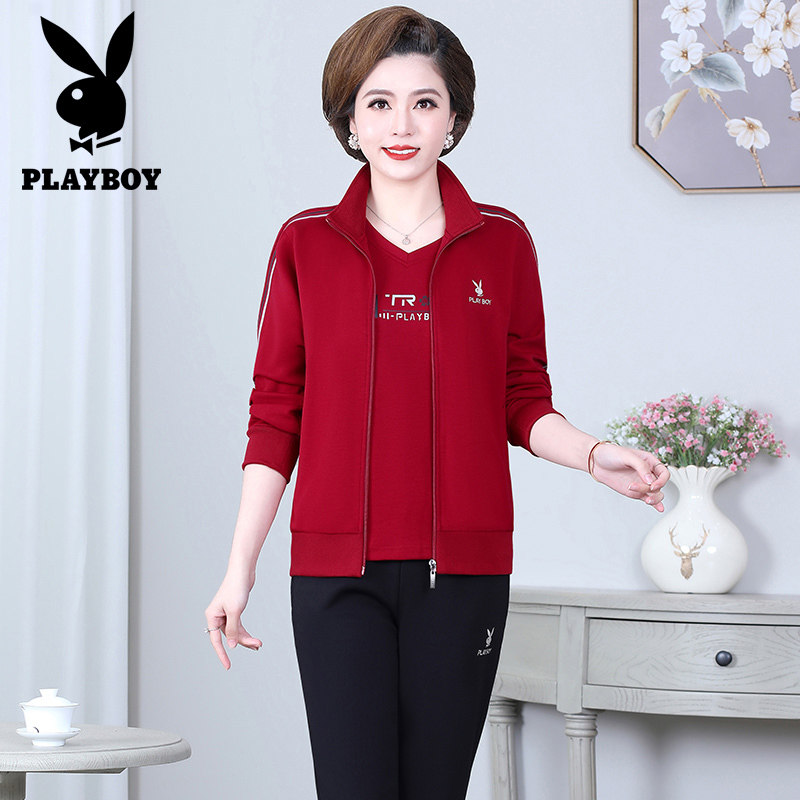 Flowers Playboy Sports Suit Women's Mother Clothing Cotton Spring Autumn Money Long Sleeves Thick Cotton T Loose Casual Middle Aged 2 pieces