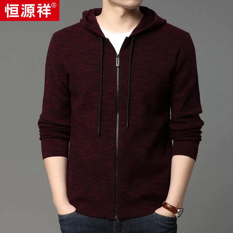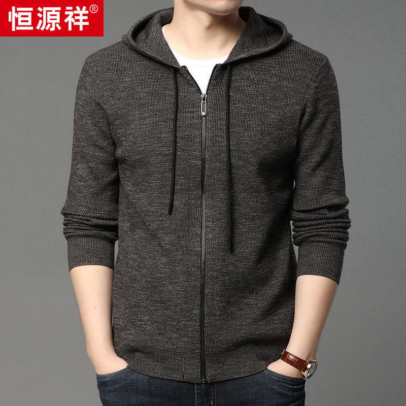 Heng Yuan Xiang zipper cardigan men's coat hooded spring and autumn Korean fashion casual sweater men's knitwear