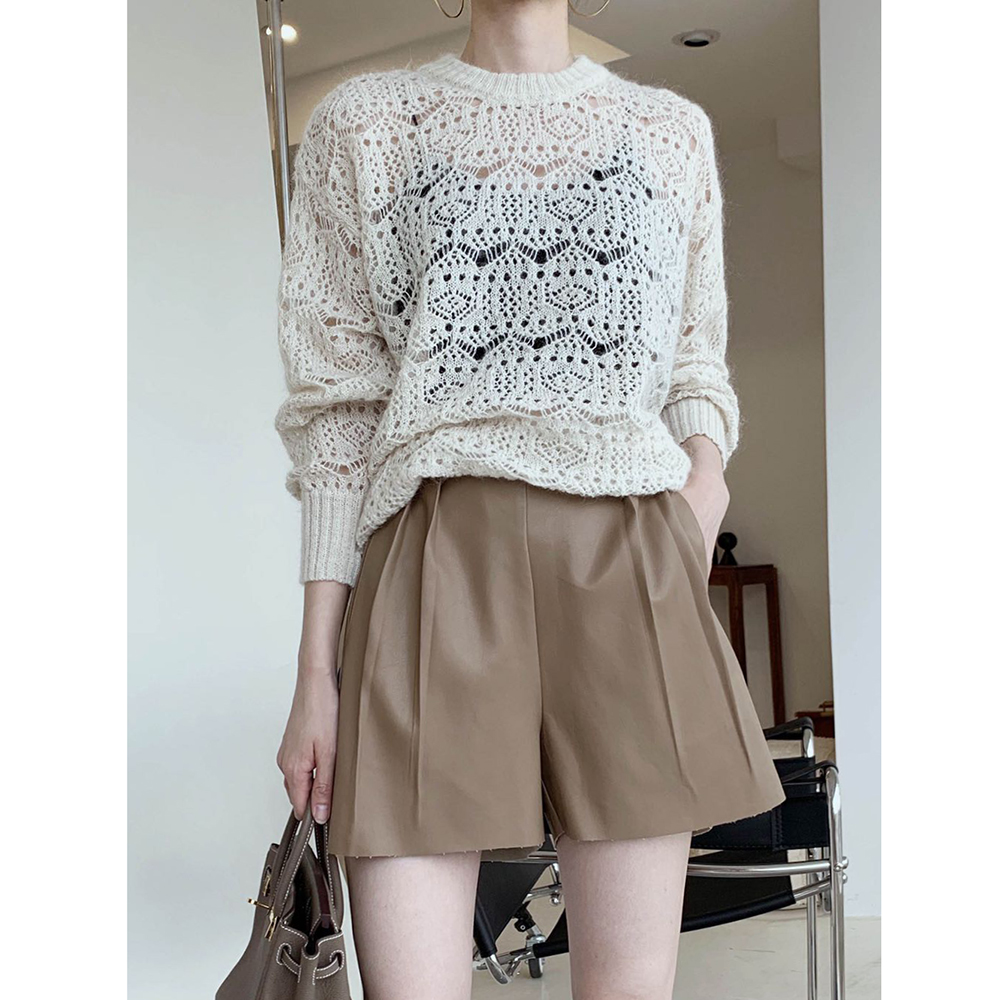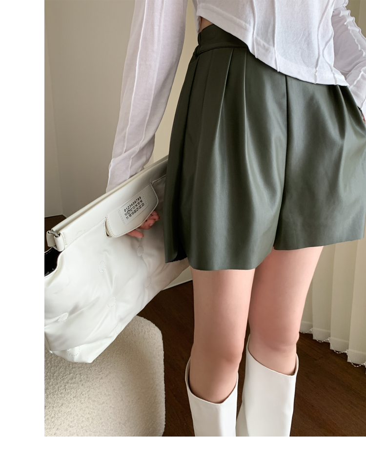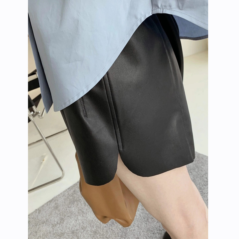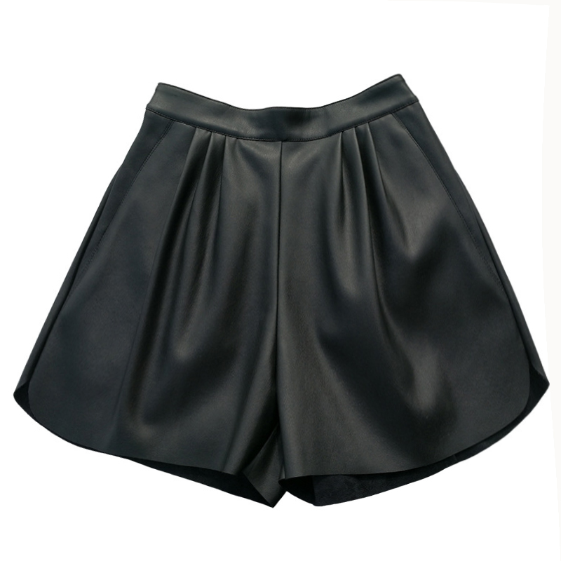 Autumn Winter New High Waist Wide Leg PU Leather Shorts Women Trendy Import Little Goat Leather Pants Suit Shorts A-word Casual Pants