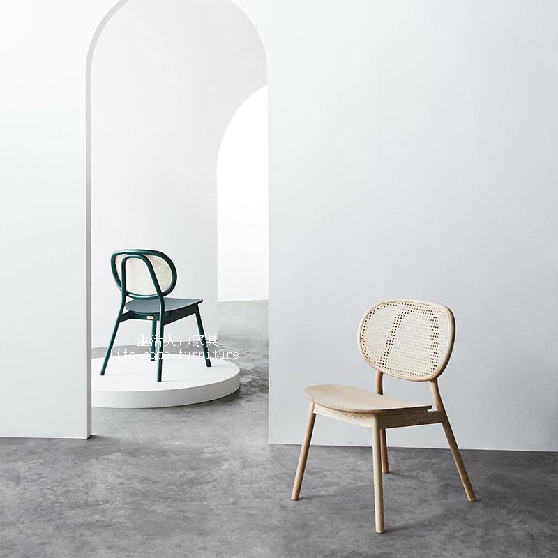 Nordic solid wood rattan chair rattan back chair fashion light luxury minimalist designer single chair middle aged ash dining chair