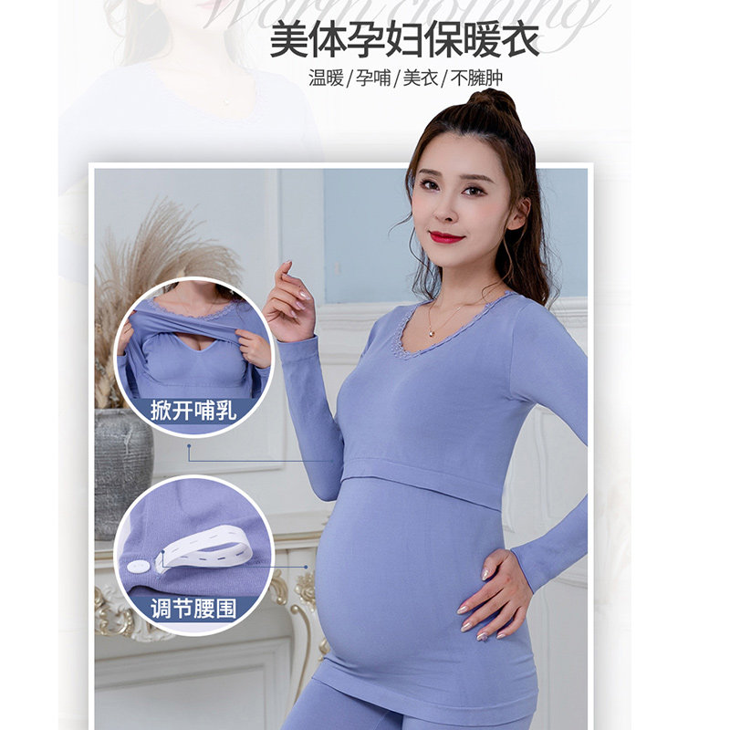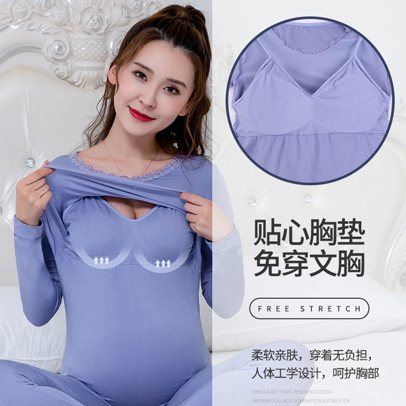 Maternity autumn clothes sanitary pants nursing pajamas with chest pads wear-free underwear new seamless body heat underwear