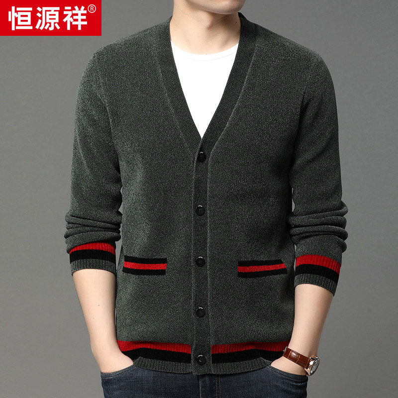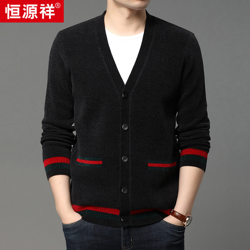 Heng Yuan Xiang knitted cardigan men's autumn winter loose leisure in young men's pure color joker sweater coat male