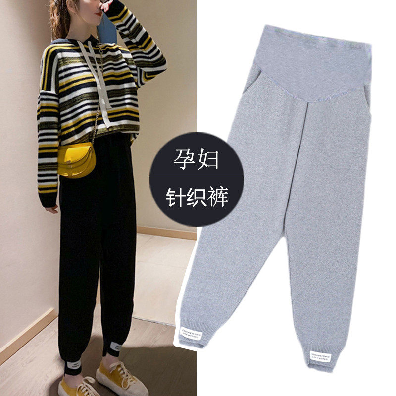 Pregnant women's trousers spring and autumn new plus velvet cotton material casual loose harem pants sports carrot pants autumn and winter outer wear trendy mother
