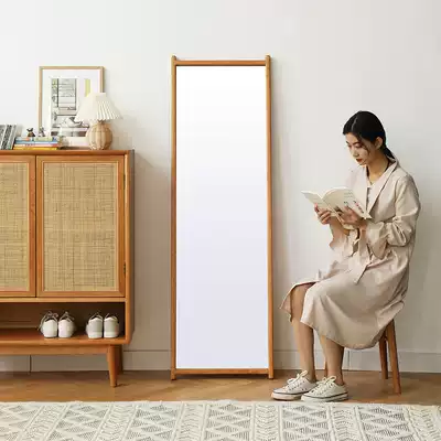 Nordic Japanese-style black walnut cherry wood solid wood frame full-length mirror Household floor-to-ceiling full-length mirror Simple full-length mirror