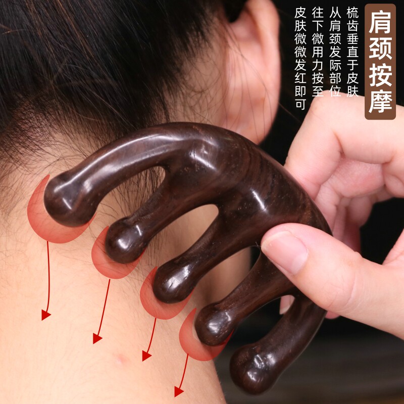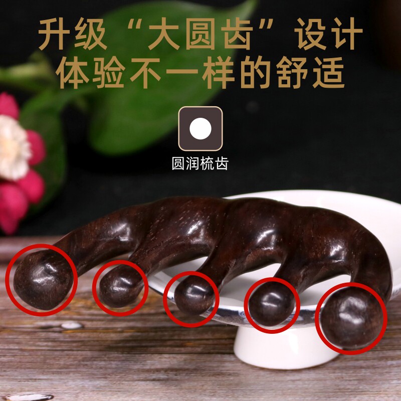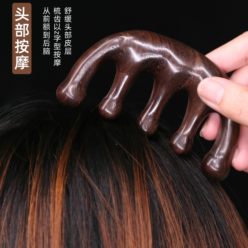 Comb culvert massage comb natural ebony comb big tooth comb scalp head meridian comb anti-static female hair loss five teeth