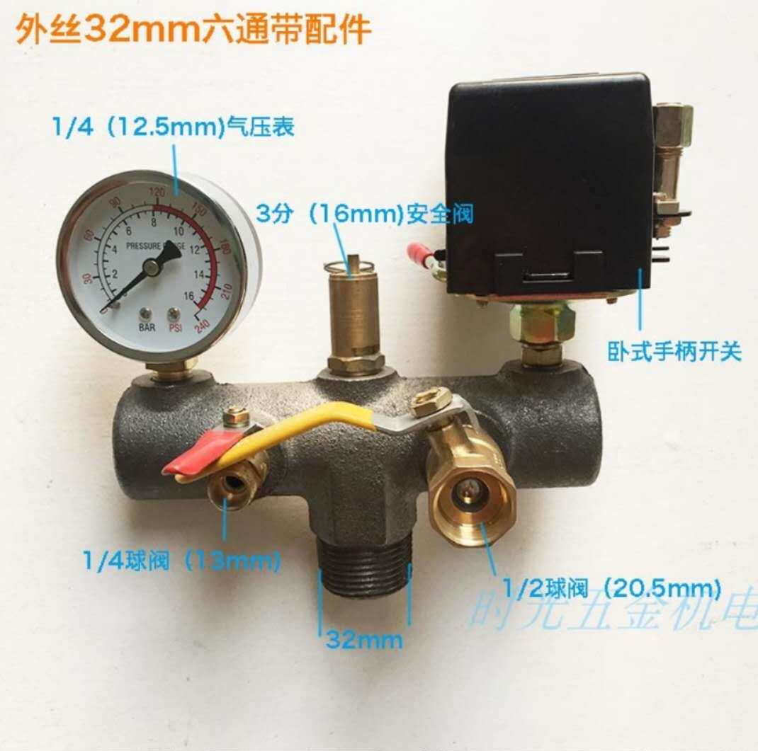 Boutique air compressor accessories air pressure gauge outlet switch assembly five-way six-way seven-way cast iron cross arm bracket