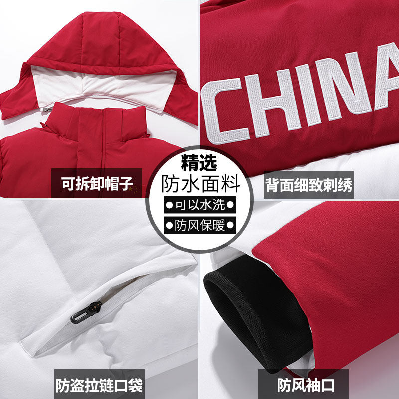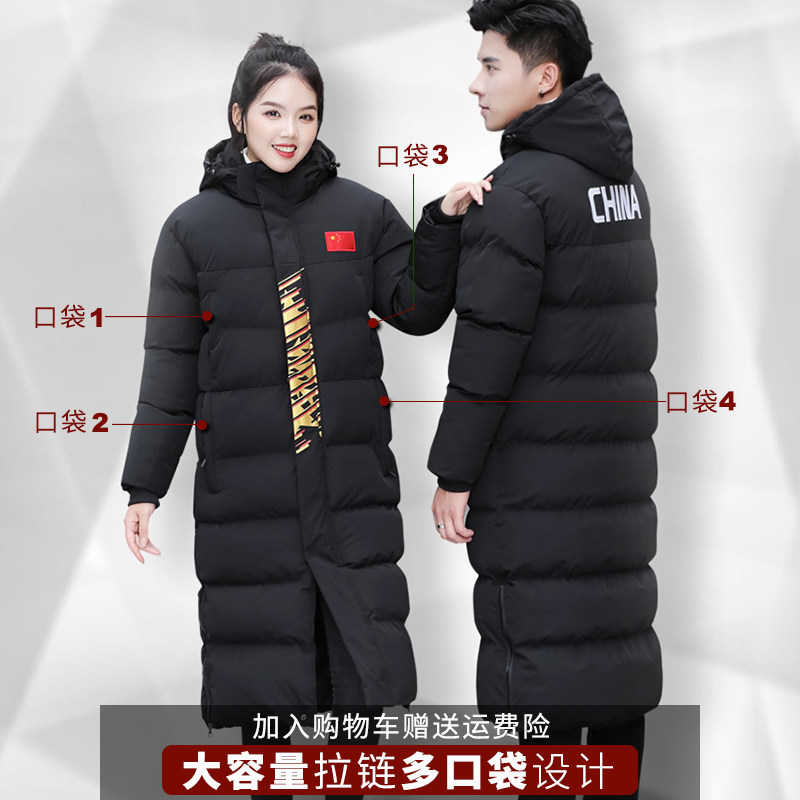 Sports cotton overcoat knee long winter training coat sports winter training suit athletes down cotton clothing national team