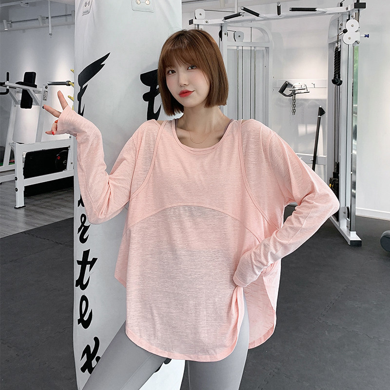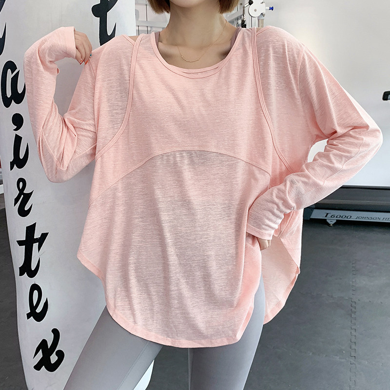 Large size fitness clothes women's fat mm quick-drying T-shirt autumn and winter sports blouses pregnant women loose long-sleeved yoga clothes tops