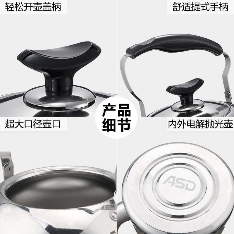 Asda 304 stainless steel kettle Large capacity household kettle Gas whistle induction cooker Universal 4L5L6L