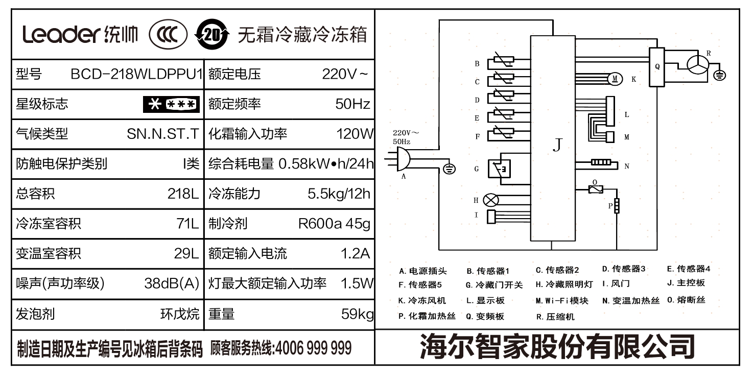 Haier produced Leader BCD-218WLDPPU1 French multi-door variable frequency frost-free smart refrigerator