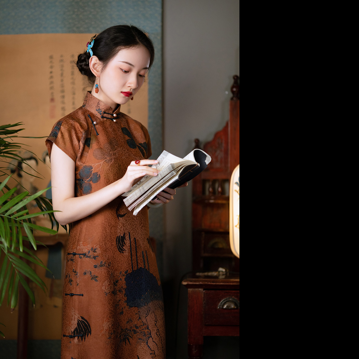 The retro style of the wind,A long flag robe.